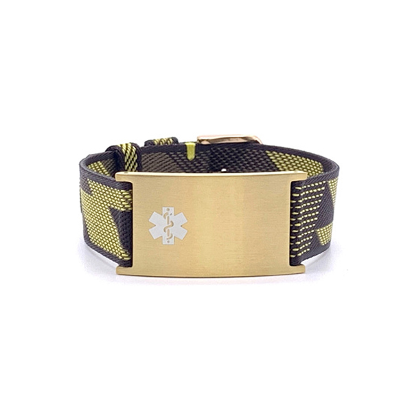 Pulsera Geometria Amarilla de nailon ajustable. Un brazalete de identificación médica habla por usted en una emergencia cuando usted no puede, lo que permite a los socorristas evaluar adecuadamente la situación y cómo tratarlo adecuadamente.