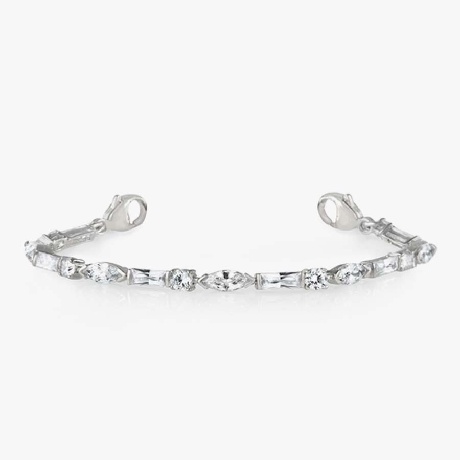 Silver mother of pearl bracelet with interchangeable crystals for women.