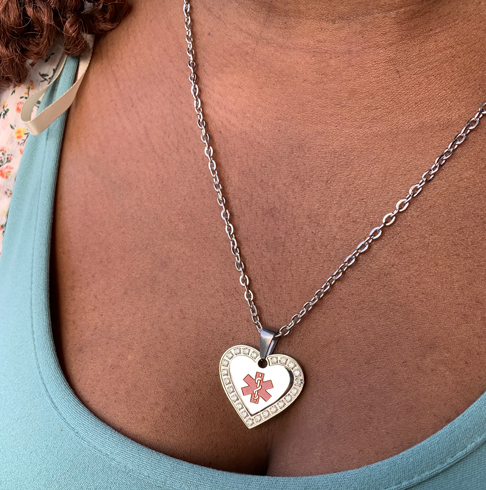 ● Este collar de identificación médica de corazón de acero inoxidable antialérgico es una excelente pieza de declaración para cualquier atuendo y completará tu atuendo con seguridad. Es el mejor regalo para un cumpleaños, Feliz Navidad o cualquier aniversario.