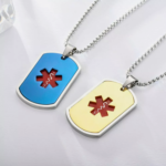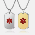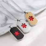 El código MIRPRE® y el texto disponible se encuentran en la parte trasera de esta medalla Estrella de Vida Colour dorada. Disponible para cadenas intercambiables, medalla con símbolo de caduceo médico en rojo. Material de medalla y cadena: acero inoxidable quirúrgico hipoalergénico de alta calidad. Excelente resistencia a la corrosión y duración.