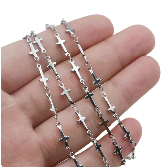 Esta cadena de cruces es conocida por ser atemporal y versátil. Seguro para la ducha y para pieles sensibles, no se deslustra ni se desvanece.