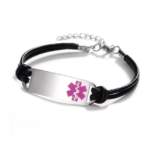 Esta medalla plisada con pulsera cordón de piel tiene disponible su grabado MiRPRE solo en la parte trasera o delantera. Totalmente personalizable para combinar con todas las tiras de pulseras intercambiables.Símbolo de caduceo médico en rojo.