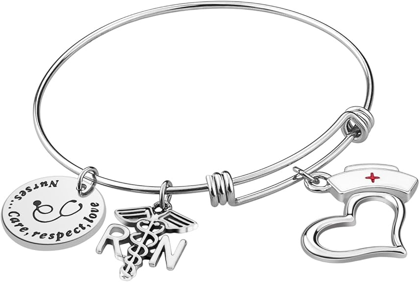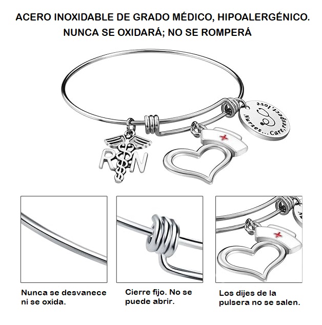 Pulsera médica Pandora de acero inoxidable para la enfermera profesional con dije de identificación médica roja. ● Una pulsera de identificación médica te representa como enfermera registrada en caso de emergencia; “cuidan, respetan y aman, permitiendo que los servicios de emergencia evalúen la situación y te brinden el tratamiento adecuado”.