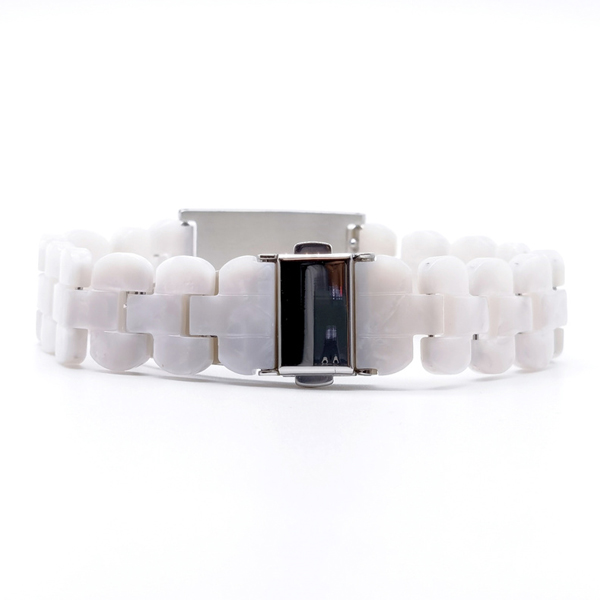 Pulseras de resina blanco perla acero inoxidable color plata.