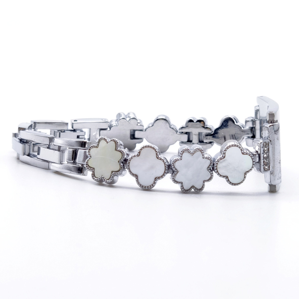 Brazalete trébol de cuatro hojas Aleación de zinc + madreperla acero inoxidable Color plateado+blanco con simbolo rojo