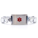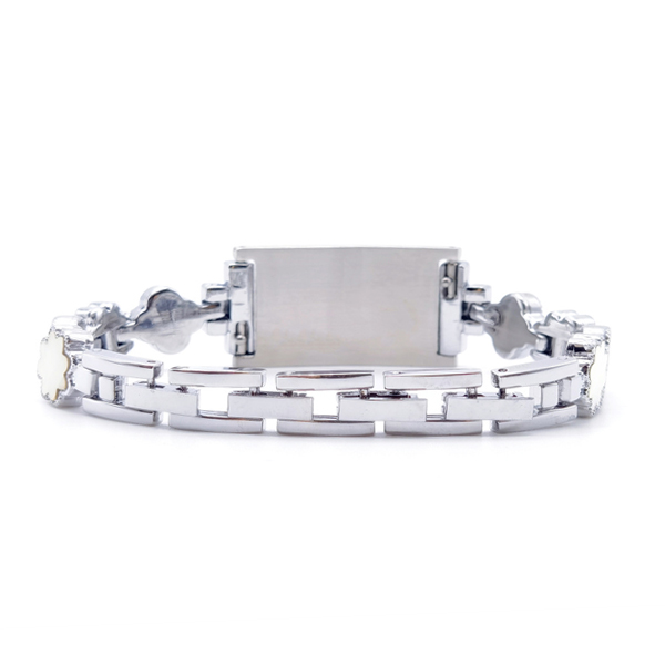 Trébol de cuatro hojas Aleación de zinc + madreperla Acero inoxidable Color plateado+blanco Clásico, moderno, liviano, resistente al agua, exquisito, simple y bien combinado. Estas excusitas, pulseras de identificación médica con trébol de cuatro hojas, se adaptan a personas de todas las edades y en cualquier ocasión Cuando se trata de encontrar una identificación cómoda que se adapte a su estilo de vida activo, no debería tener que pasar por esta pulsera de identificación médica de trébol de cuatro hojas. La placa de acero inoxidable de 18 mm x 32,5 mm puede grabar/grabar con laser información médica en la parte posterior. Con cierres de joyería de calidad; fácil de usar y quitar.